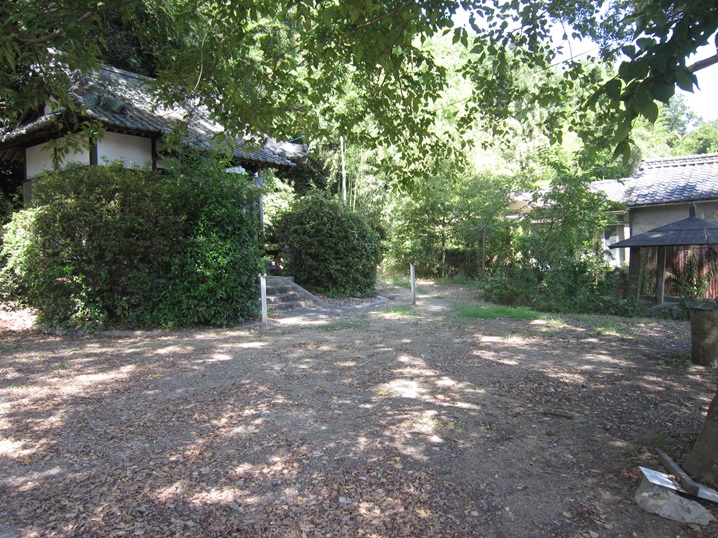 上の写真:手前の荒神社が真光寺跡、奥の民家を石垣で囲んだところが御所跡と伝わりますが、民家のため立ち入りや近づいた写真は撮影できませんのでご注意。