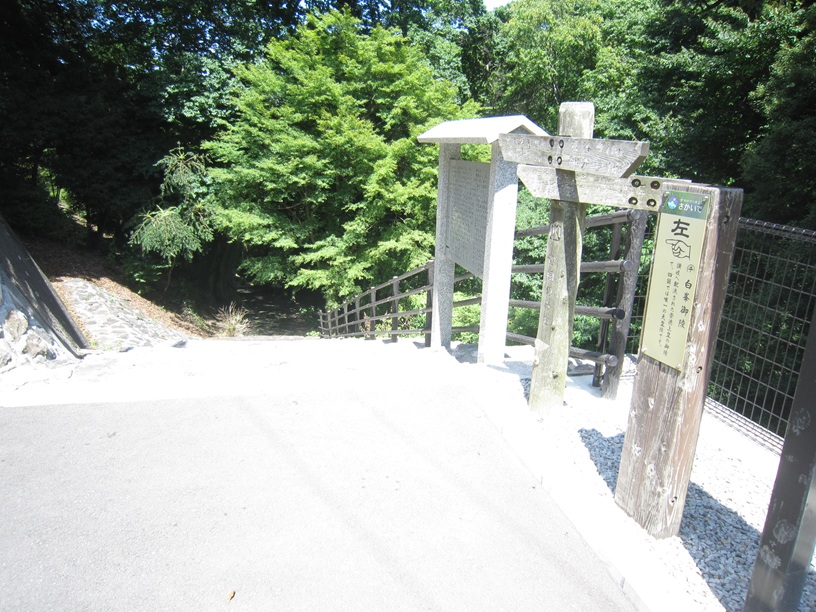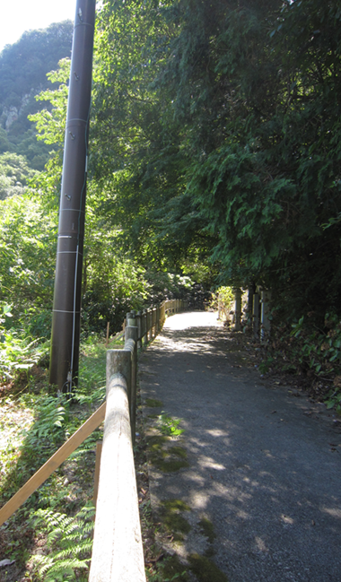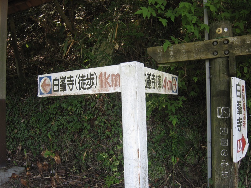 高屋から白峯寺に向かう道路の途中、稚児ケ滝を正面に見て右ヘアピンカーブする処から、西行法師の道を残り1km体験することができます。(手前に車を置ける広い路肩が反対車線側にあります。車ではあと4kmです)