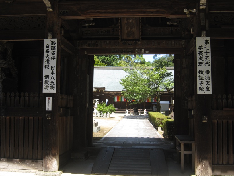 上皇御遺体が荼毘に付された場所がそのまま墓所になったと考えられ、のちに御陵として整備されます。九条兼実の日記「玉葉」には、上皇崩御の27年後に後白河院が、崇徳院の御陵辺りに仏寺を置く宣下を行うか検討しましたが、既に「堂舎」が置かれて供養されていることが判明しました。この時の「堂舎」とは、白峯寺縁起に記すように、鼓岳(白峰宮と天皇寺のある金山)山麓にあった上皇御所を「近衆者阿舎利章実」が上皇崩御後速やかに白峯に遷して祀っていた建物(「頓証寺」)だということになります。このことからも、上皇が幽閉されていた御所は今の白峰宮と天皇寺の処にあったことになります。
