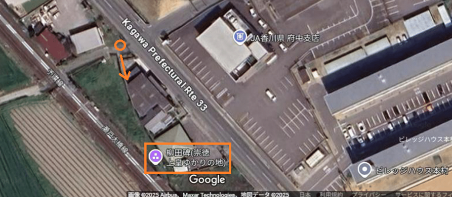 ④柳田碑(上皇崩御の地) (県道33号 JA香川府中支店前道路の反対側)